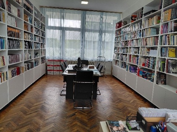 Školska biblioteka je nedavno zasijala u potpuno novom svjetlu. Zahvaljujući podršci Uprave, prostor biblioteke je značajno unaprijeđen kako bi učenicima i nastavnicima pružio još prijatnije i korisnije mjesto za rad, učenje i čitanje. Našu biblioteku sada krase nove police koje uredno čuvaju bogatiji i raznovrsniji fond knjiga. Postavljene su i nove udobnije stolice, kao i moderan radni sto za bibliotekara, čime je prostor dobio ne samo funkcionalnost već i estetski sklad. Na stolu za čitaoce se nalaze dva računara koja našim učenicima i posjetiocima omogućuju da pišu i uređuju svoje radove, vježbaju digitalne vještine, čime se dodatno podstiče njihova kreativnost i samostalno učenje.